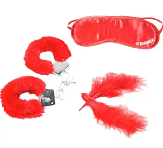 Kit de esposas, cegadera y plumas Starsex