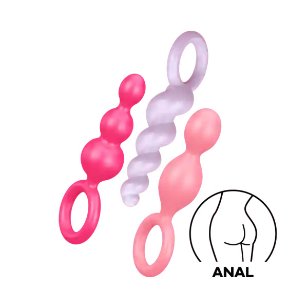 Este set de plugs anales Booty Call de Satisfyer tiene 3 diferentes formas para un juego variado con un tamaño ascendente para una inserción más fácil asimismo está fabricado en silicona segura para el cuerpo y tiene una argolla para una extracción segura. No importa si eres un principiante o un gozador experimentado, con éste set tienes variedad y calidad. 📏Plug 1: Insertable: 9cm x 2.5cm (la bola chica)/ 3cm (la bola grande). Plug 2: Insertable: 9cm x 1.75cm (la bola chica)/ 2.3cm (la bola mediana)/ 3cm (la bola grande) Plug 3: Insertable: 10cm x 2,8cm