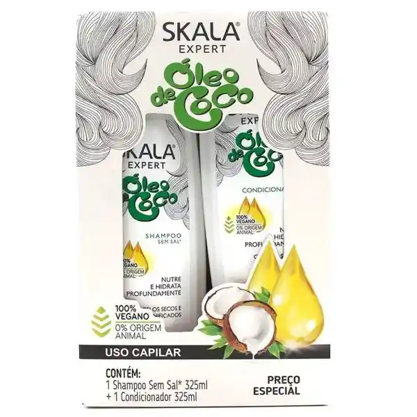 Skala Expert Kit Shampoo + Acondicionador Aceite de Coco – 650 ml Kit de cuidado capilar con aceite de coco que limpia suavemente, hidrata y nutre el cabello, dejándolo suave, brillante y manejable. Ideal para uso diario en todo tipo de cabello que necesita hidratación y nutrición extra