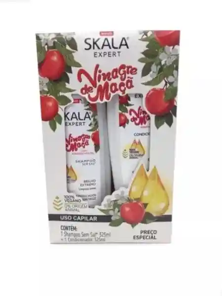 Skala Expert Kit Shampoo + Acondicionador Vinagre de Manzana – 650 ml Dúo capilar con vinagre de manzana que limpia y acondiciona, ayudando a eliminar residuos, equilibrar el cuero cabelludo y dejar el cabello suave, brillante y manejable. Ideal para uso diario en todo tipo de cabello que necesita frescura y ligereza.