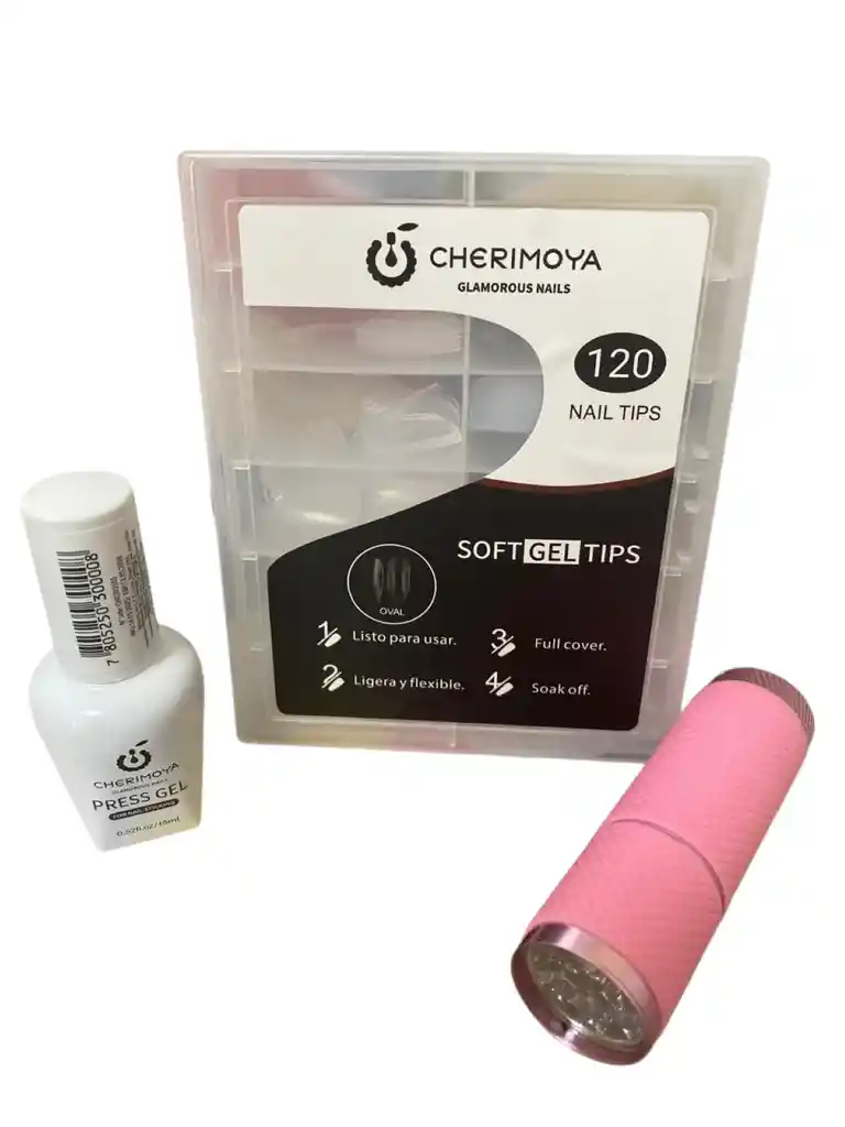 BIENVENIDOS A YASENIA BEAUTY STORE SPA,SEGUIMOS TRABAJANDO PARA USTEDES... * EXCELENTE KIT SOFT GEL PRÁCTICO PARA TI QUE BUSCAS COMODIDAD CONTIENE: * 1 CAJA DE TIPS SOFT GEL X 120 PCS (MODELO OVAL) * 1 PRESS GEL LIQUIDO 15 ML * 1 MINI LITERNA 6 WATTS COLOR ROSA (NO INCLUYE BATERIAS AAA) RECUERDA QUE TODAS TUS COMPRAS ESTAN PROTEGIDAS POR RAPPI... ¡CON LA MEJOR ATENCION PRESTADA!!!