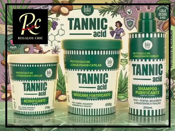 "¡Recupera la fuerza y vitalidad de tu cabello con el poder de la naturaleza! ¿Notas tu cabello débil, quebradizo o sin movimiento? Es momento de darle un respiro profesional. Con el Kit Tannic Acid de Lola Cosmetics, experimentas una transformación profunda desde la raíz. Este innovador sistema de cuidado capilar utiliza el ácido tánico para fortalecer la fibra, devolviendo la elasticidad y el brillo perdido a las melenas más exigentes. ¿Por qué este tratamiento es el regalo ideal para tu cabello? Protocolo Completo de Longevidad: Incluye Shampoo Purificante, Acidificante y Máscara Fortificante. Una rutina de belleza técnica que limpia profundamente, equilibra el pH y sella la cutícula para un cabello invencible. Calidad Premium y Ética: Fórmulas veganas y cruelty-free con ingredientes de alta gama. Es un presente consciente que ofrece resultados de salón sin salir de casa, ideal para quienes buscan productos de lujo naturales. Resultados Inmediatos: Ahorra tiempo en tratamientos costosos. Este pack de tratamiento ofrece una solución capilar efectiva para cabellos que necesitan resistencia a la tracción y un acabado sedoso y manejable. Este set de belleza es el obsequio perfecto para esa persona especial o el detalle que tu propia rutina necesita. Ya sea una sorpresa a domicilio o un regalo personalizado para alguien que ama cuidarse, este box de cuidado personal de Regalos Chic garantiza satisfacción total. No es solo un producto, es una atención especial para la salud de tu melena. ¡Stock limitado! No permitas que tu cabello siga sufriendo. Pide tu kit fortificante ahora y aprovecha nuestra entrega a domicilio inmediata. ¡Compra el tuyo hoy! Tannic Acid Lola Kit de tratamiento capilar Shampoo purificante Máscara fortificante Acidificante capilar Cuidado del cabello Productos veganos Regalo de belleza Set profesional Obsequio para mujer Detalle de cuidado personal Sorpresa a domicilio Tratamiento para cabello débil Kit brasileño Set brasileño productos de brasil Pack de belleza profesional"