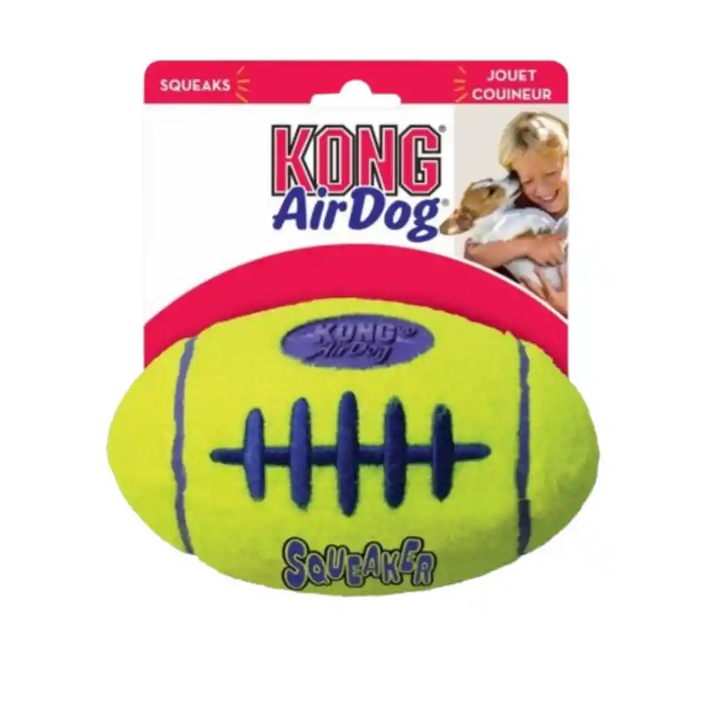 KONG AirDog Football combina dos juguetes clásicos para perros: la pelota de tenis y el chirriador. Su forma de pelota de fútbol, inmediatamente reconocible, lo convierte en el juguete de buscar y recoger perfecto. Nuestro AirDog Football resistente y de alta calidad no desgastará los dientes del perro. Está hecha con un fieltro no abrasivo especial, no con el material abrasivo de las pelotas de tenis normales KONG le proporciona a usted y a su mejor amigo más diversión por centímetro cuadrado que cualquier otro juguete en el mundo. KONG es reconocido por mascotas y dueños de todo el mundo, fabricado con goma natural KONG. MEDIDAS: MEDIUM: 12,7 x 7,6 cm