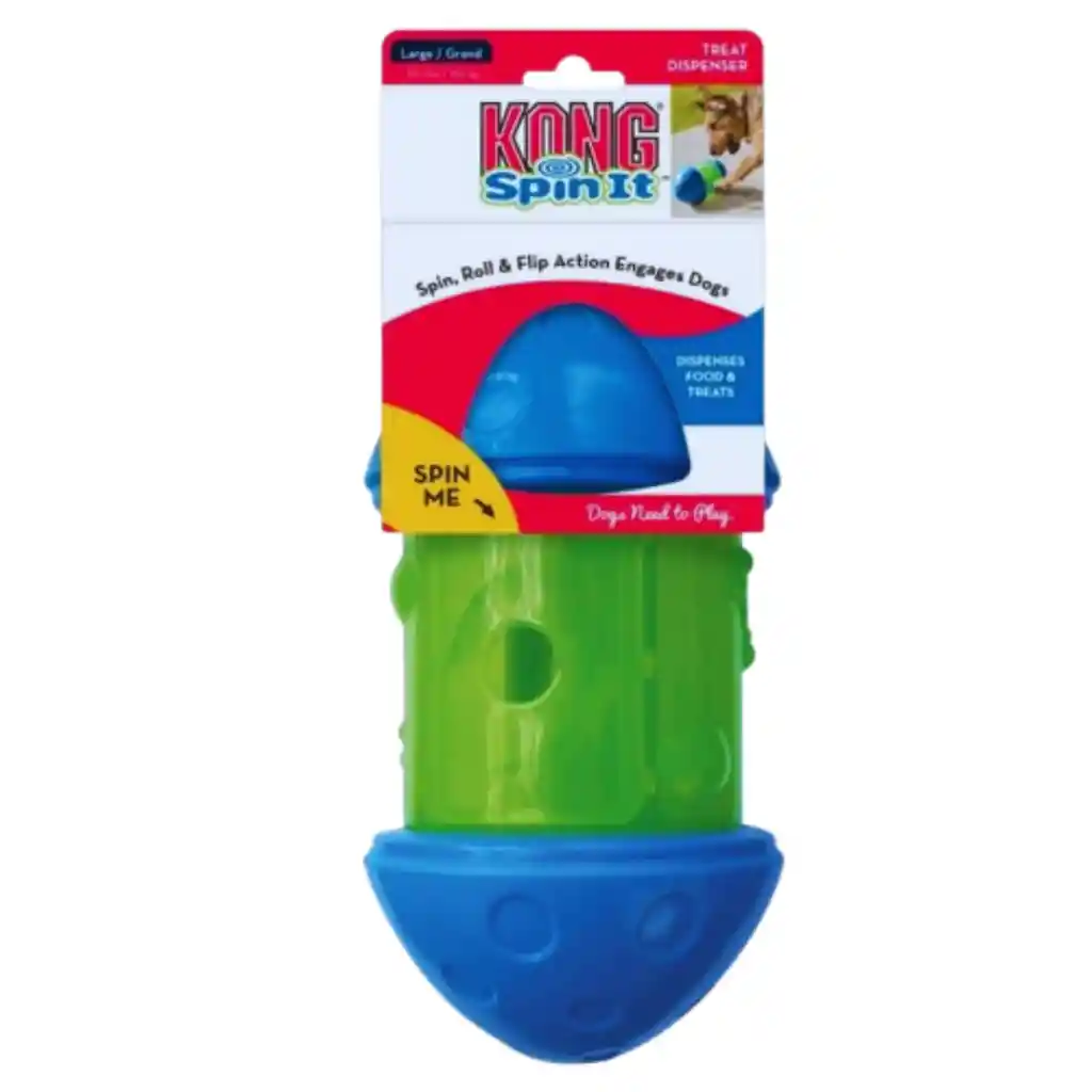 Descripción: Juguete que ayuda a la estimulación metal, promueve el juego entretenido y puede ser usado para dispensar su comida diaria reduciendo la velocidad de comer y ayudando a mantener al actividad física y el control saludable del peso. Características: Un juego para hacer girar, rodar y dar vueltas que entusiasma a los perros a la hora del juego Dispensa alimento y bocados para un enriquecimiento mental continuo Los movimientos impredecibles del Kong Spin It Large desatan los instintos naturales El juego con objetos satisface la necesidad instintiva de todos los carnívoros de “cazar-capturar-masticar”. Estimula su instinto natural de buscar comida y alargar el tiempo de la ingesta