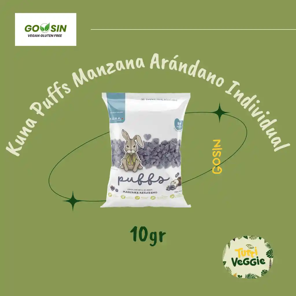 Colación saludable a base de harina de arroz, jugo concentrado de manzana y harina de arándanos. Apto para consumo a partir de los 8 meses de edad. Elaborado con ingredientes 100% naturales. Producto libre de sellos, grasas totales, colesterol y sodio. Sin azúcar ni sal añadida. Sin conservantes, ni colorantes ni saborizantes artificiales. Libre de gluten. Naturalmente sin lactosa. Producto vegano.
