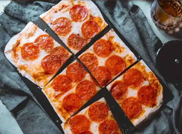 Salsa de tomate casera mozzarella fior di latte pepperoni orégano.Masa: harina de trigo agua aceite vegetal sal y levadura.Para 2 personas. Producto congelado