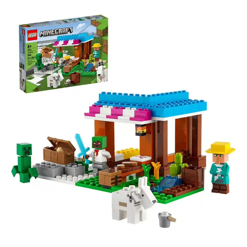 Para los aventureros y exploradores de nuevas tierras llega este emocionante set de construcción la Pastelería de Lego Minecraft, el cual está repleto de personajes, accesorios y funciones que mantiene a los jugadores llenos de diversión al estilo Minecraft donde pueden ¡Construir, combatir y explorar! Incluye un elenco de personajes de Minecraft como un pastelero, un aldeano de las nieves, una cabra y un Creeper. La concurrida pastelería cuenta con una sala amoblada, esta una vez armada alcanza unas medidas aproximadas de 8 x 17 x 14 cm. Este es un juguete que desarrolla las habilidades creativas y la destreza, fomentando a que creen un juego imaginativo promoviendo la historia de fantasía, el juego de rol y desarrollar nuevas habilidades y hobbies. SKU Lego 21184.