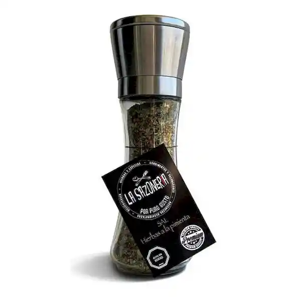 Sal, albahaca, pimienta negra seca y orégano de nuestro norte de chile de hoja entera, con un sabor predominante a frescura. Para sazonar todo tipo de carnes y guisos. Sostener el molinillo y girar el cabezal según la cantidad de sazonador deseada. packing: Frasco
