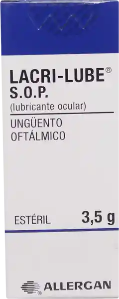Principio Activo: Clorobutanol / Forma Farmacéutica: Solución Oftálmica / Dosis Por Forma Farmacéutica: 0.5%. ¿Para Qué Enfermedades o Condiciones se Prescribe Este Medicamento? Terapia Suplementaria Para Lubricar y Proteger el Ojo Donde Existe Una Reducción o Interrupción Del Flujo Lagrimal Normal. ¿Cómo Debo Usar Este Producto? (Posología) Bajar el Párpado Inferior Para Formar Una Cavidad, Aplicar Una Pequeña Cantidad de Ungüento en la Cavidad Formada Según se Necesite. Presentación Lacri-Lube Viene en Formato de Solución Oftálmica, el Envase Contiene 3.5 g. Condiciones de Almacenamiento Almacenar a no Más de 30°C. Mantener en un Lugar Seguro y Alejado de Los Niños. Principio Activo (Nombre Genérico) Clorobutanol. Advertencias de Uso se Recomienda Administrar Con Precaución en Casos de Daño o Laceración de la Superficie Corneal. Evitar Que la Punta Del Tubo Tenga Contacto Con Cualquier Objeto o Superficie, ya Que Esto Puede Contaminar el Ungüento. Dosificación la Concentración de Clorobutanol es de 0.5% (0.05 g/G). Reacciones Adversas no se Conocen Hasta la Fecha Efectos Adversos Debido al Uso Prolongado o Repetido Del Producto. Contraindicaciones no Usar en Caso de Hipersensibilidad a Cualquiera de Los Ingredientes. Condición de Venta Venta Libre.