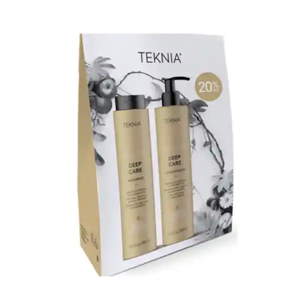Kit Contiene 2 Unidades de 300 mL c/u. Shampoo 300 mL + Acondicionador 300 mL. Kit Para el Cuidado Capilar Lakmé Teknia Deep Care. Shampoo 300 mL Reparador Para Cabellos Dañados. El Shampoo Fortalece Los Puentes Internos Del Cabello. Repara y Nutre en Profundidad. Devuelve la Suavidad y el Nivel de Hidratación Natural. El Acondicionador Acondiciona y Fortalece Desde el Interior de la Fibra. Incrementa la Resistencia a la Rotura. Mejora la Peinabilidad de Forma Inmediata. Permite Usarse a Diario Por su Ligera Textura. Fórmula Vegana Libre de Parabenos Libre de Aceites Minerales.
