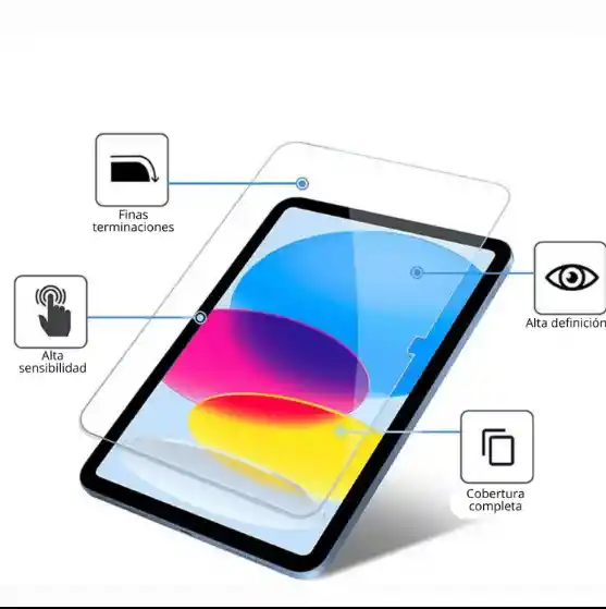 •Cristal Dureza 9H: No solo previene arañazos o rayones, sino también golpes de alto impacto •Alta Sensibilidad: No retrasa la sensibilidad del Lápiz ni el táctil •Alta Transparencia: No opaca la pantalla de tu dispositivo •Diseño Inteligente: Cubre perfectamente la pantalla de tu dispositivo gracias a sus esquinas curvadas. Botones, Cámara y Orificios de audio no se verán afectados •Compatible con Funda para iPad: Los bordes de la Mica se ajustan perfectamente