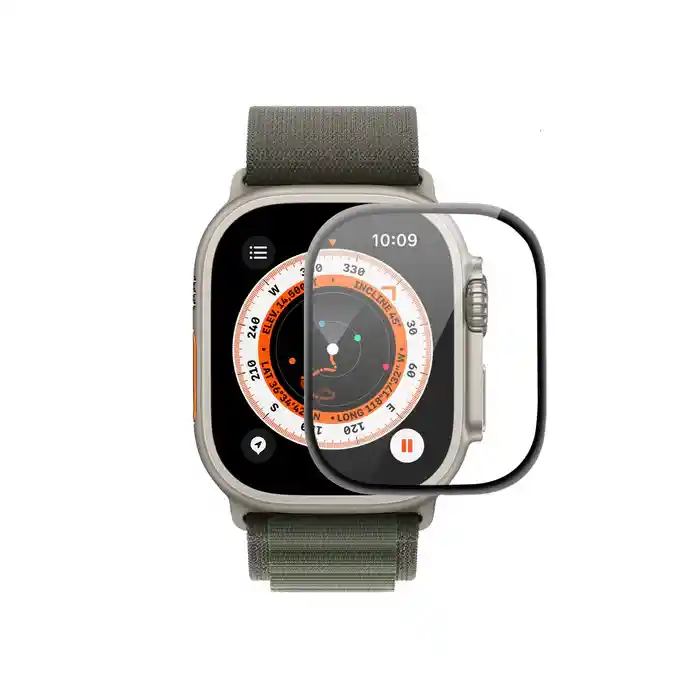 Lámina De Gel Flexible para Apple Watch Ultra 49 MM - Compatible con Serie 1 y Serie 2 La película de gel protectora curvada 3D cubre completamente la pantalla del reloj de borde a borde, proporcionando una protección completa 3D a tu Apple Watch. Protección de pantalla 3D de cobertura completa: cubre completamente la pantalla del Apple Watch de borde a borde, muy duradera y no se desplaza fácilmente. Rendimiento perfecto con revestimiento oleofóbico para proteger tu Apple Watch del polvo, suciedad, huellas dactilares, arañazos, golpes y daños y mantiene la pantalla de tu reloj siempre como nuevo. Mejor que el vidrio templado y TPU: Este protector de pantalla utiliza el último material de polimetilmetacrilato (PMMA, un material de repuesto para vidrio) para proteger la pantalla del reloj. No solo es resistente a los impactos, sino también suave y fuerte. Debido a las características de este material, si golpea el borde, no se romperá como el vidrio templado. Además, en comparación con el material de TPU tradicional, puede evitar mejor que el reloj se raye debido a su mayor resistencia. Alta transparencia y sensibilidad: 99.99% de claridad HD proporciona una experiencia de usuario original. Pantalla premium antihuellas con alta transparencia que mantiene el color y el brillo originales; revestimiento especial ultrafino de 0.008 in que garantiza una precisión táctil táctil. Las capacidades de precisión de tacto perfecto y deslizamiento te permiten utilizar tu reloj con eficacia