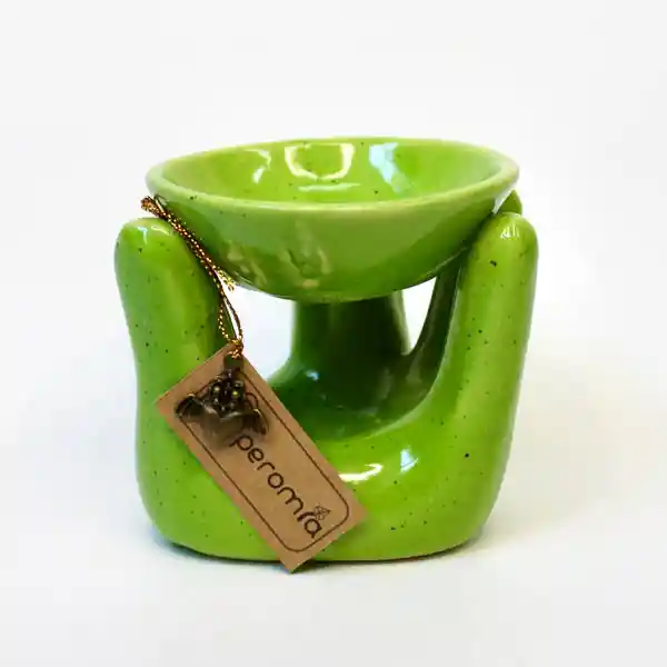 La lámpara de aceite Manito verde combina diseño artesanal y funcionalidad, incluyendo una vela para difundir aromas de manera suave y continua. Ideal para decorar y perfumar espacios con un toque natural y relajante.