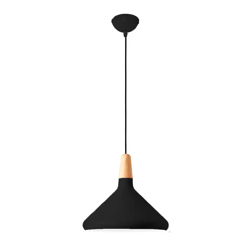 Lámpara Colgante Techo Bar Restaurante Nórdica Colores 27CM Negro Dale un toque único a tus espacios con esta elegante lámpara colgante de diseño industrial. Su estética mezcla lo vintage con lo moderno, logrando un equilibrio perfecto entre lo simple y lo sofisticado. Ideal para realzar la decoración de tu living, comedor, dormitorio, cocina, isla central, cafetería, bar o cualquier rincón de tu hogar u oficina. Esta lámpara está construida con materiales de primer nivel. Su estructura de hierro forjado ha sido cuidadosamente elaborada para ofrecer gran resistencia y durabilidad. Gracias a su tratamiento con barniz horneado y múltiples procesos de pulido, la pantalla presenta un acabado uniforme y elegante que resiste el paso del tiempo sin perder estilo. Cuenta con un cable resistente y de diseño moderno cuya altura puedes regular fácilmente, adaptándose a distintos tipos de ambientes o necesidades. Solo debes aflojar el tornillo de ajuste ubicado bajo la base de techo para personalizar la posición de la lámpara. Incorpora un soporte de ampolleta E27, compatible con bombillas LED, incandescentes y de bajo consumo. Funciona con voltaje de 220v, lo que la hace versátil para diversos espacios y usos. Su instalación es rápida y sencilla. Perfecta para iluminar dormitorios, cocinas, comedores, pasillos, entradas, cafeterías, bares, restaurantes, tiendas, talleres y más. Su diseño se adapta a estilos industriales, rústicos o contemporáneos, aportando un toque decorativo que no pasa desapercibido. Especificaciones: Materiales: Metal + Madera Voltaje: 220v Tipo de lampara: Techo. Dimensiones: 25X57X120 CM Diseño: Clásico Industrial Colores: Negro Instalación: Fácil Área de iluminación: 8 - 10 mts2 Tipo de luz: LED de alta eficiencia Uso recomendado: Bar, salas de reunión. Paquete contiene: 1 Lámpara Colgante Techo Bar Restaurante Nórdica Colores 27CM Negro