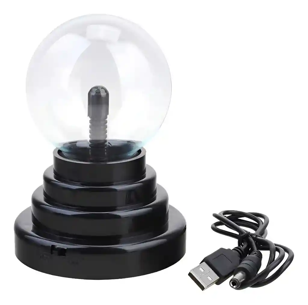 mini esfera de luz de plasma crea una espectacular pantalla de luz dentro de una esfera de cristal soplado a mano, coloque sus dedos en la superficie del vidrio y vea como los pernos de color de la luz brillante seguir sus cada movimiento. -Tócalo con la mano y los rayos de luz siguen tus dedos -Gran efecto de color -Crear un ambiente de iluminación interior especial -Encendido y apagado -Decoración perfecta para casas, fiestas, café, bares, restaurantes, etc. - NO es recomendable tener la lampara cerca de dispositivos celulares, notebook, tablet, ya que podría crear distorsión a dichos equipos mencionado por el tema que produciría interferencias o poner loca la pantalla. - Si el cristal llegase a romperse nunca conecte la lampara o podria sufrir descarga . Material: vidrio Color del cuerpo: Negro. Paquete incluye: 1 X Bola de Plasma. Les recomiendo antes de realizar su compra ver el video explicativo de la lampara. Producto muy decorativo y llamativo para los amantes de la ciencia