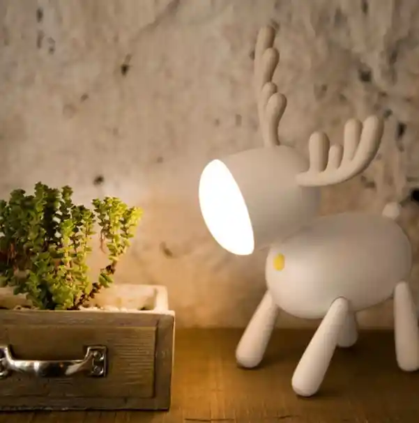 Hermosa lámpara de noche con enchufe USB. De material Silicona ABS Batería: Batería integrada de 1200 mA Tamaño: 16,9 cm x 15,9 cm x 24 cm Incluye cable USB