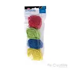 Lana 4 unidades + 2 Agujas Plásticas, colores rojo, azl, verde y amarillo CREATIVE