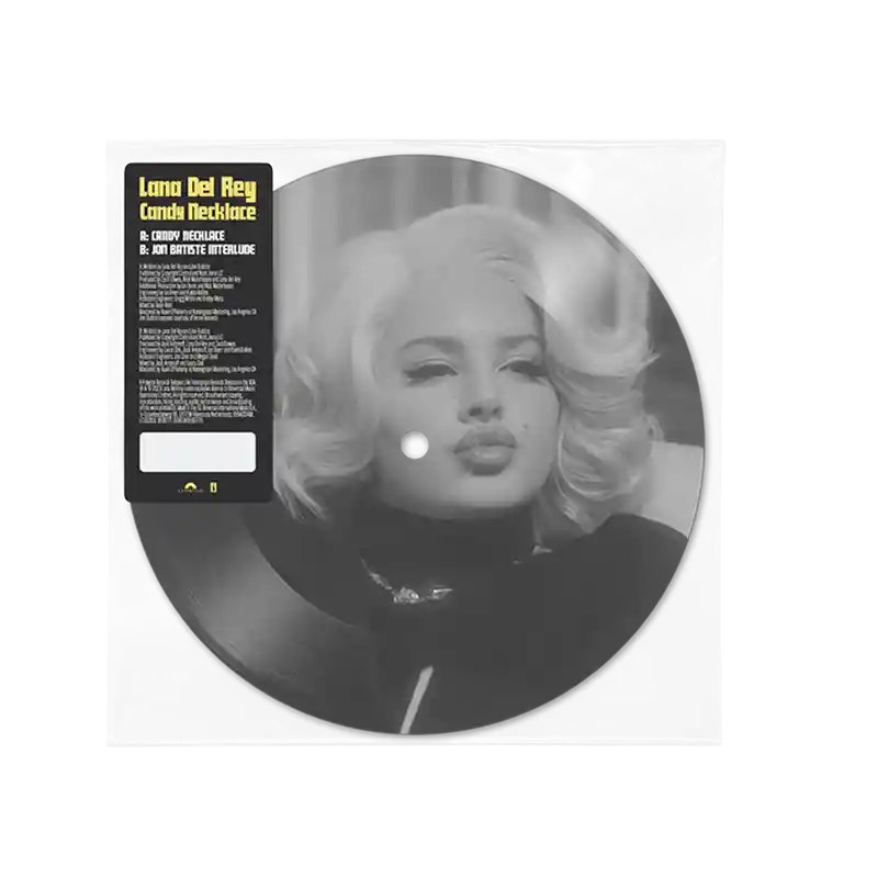 El sencillo “Candy Necklace” de Lana Del Rey está disponible en una edición limitada en vinilo de 7 pulgadas, presentada como un Picture Disc. Este lanzamiento exclusivo incluye dos pistas: la canción principal “Candy Necklace” en el lado A y “Jon Batiste Interlude” en el lado B. Características Destacadas: • Formato: Vinilo de 7 pulgadas (Picture Disc) • Lanzamiento: 2024 • Lado A: Candy Necklace • Lado B: Jon Batiste Interlude Detalles Adicionales: El Picture Disc presenta un diseño colorido y único, lo que lo convierte en una pieza de colección atractiva para los fanáticos de Lana Del Rey. Esta edición limitada es producida por Interscope Records y se destaca tanto por su valor visual como por la calidad de la música que contiene.
