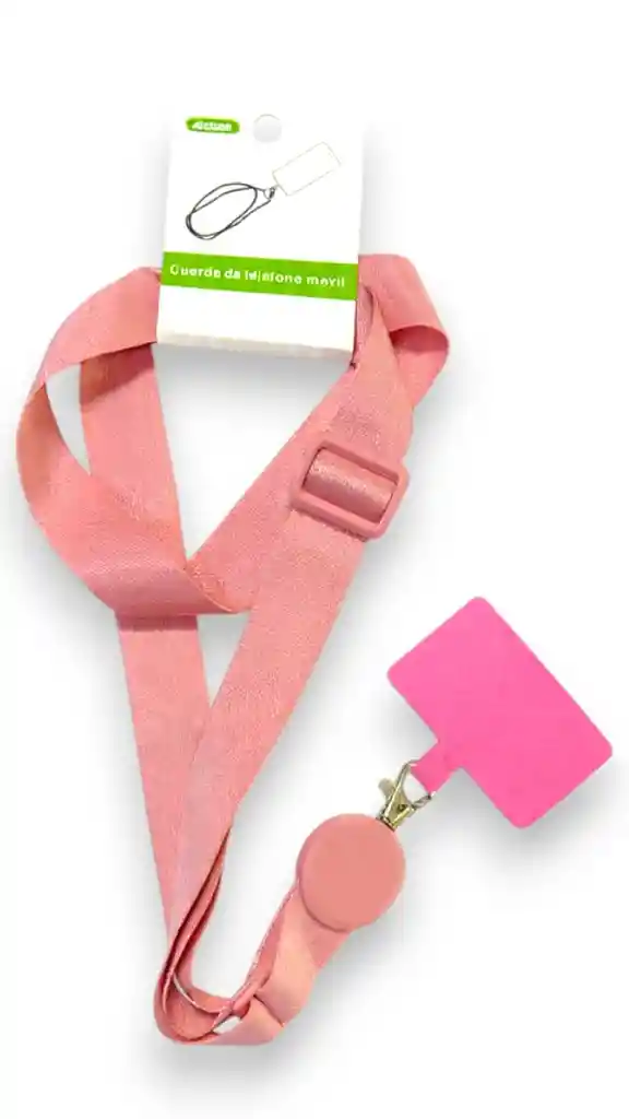 Correa satinada palo rosa con gancho metálico y placa universal. Perfecto para combinar con tu outfit y llevar tu teléfono sin riesgo de caídas.