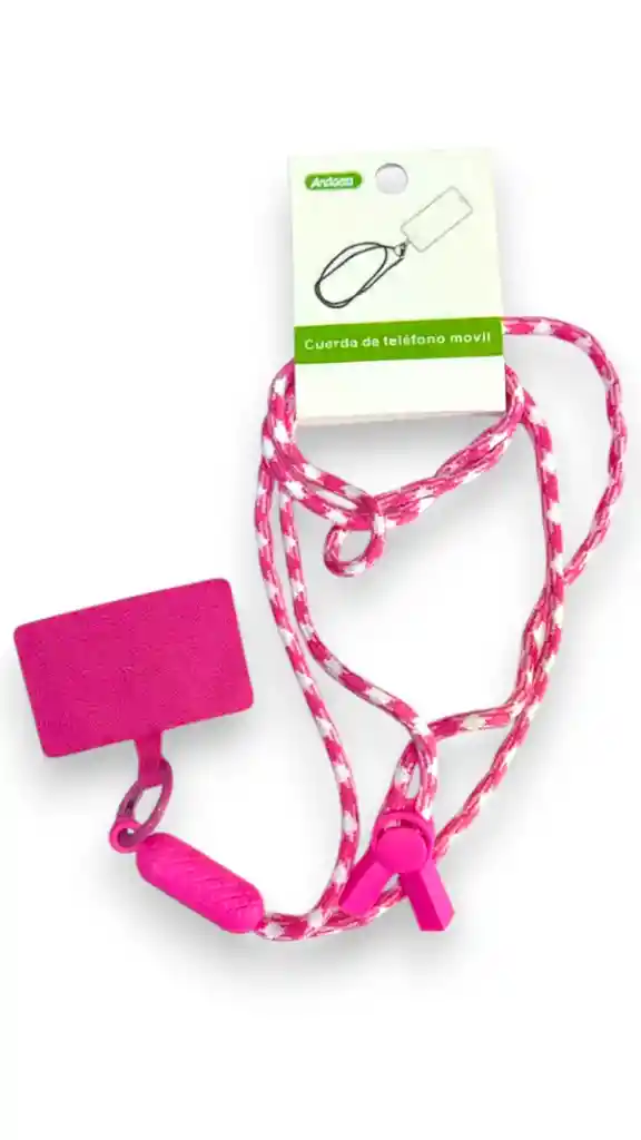 Cuerda trenzada color fucsia con detalles blancos. Incluye placa universal y diseño cómodo para uso prolongado.
