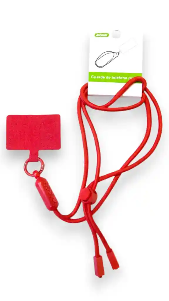 Cuerda roja vibrante con soporte universal y tope ajustable. Perfecto para destacar tu estilo y mantener tu celular seguro.