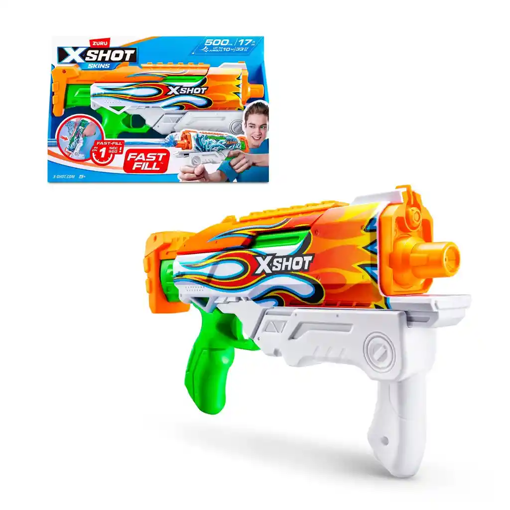 El lanza agua Hyperload skins 500 ml con sistema de llenado rápido Fast Fill de X-Shot es un juguete para pasar un día divertido con amigos y familiares en la playa, la piscina o el parque. Con su diseño ergonómica y su fácil manejo, es perfecto para niños de a partir de 6 años. Este lanza agua tiene un tanque con capacidad de 500 ml, que les permitirá disparar chorros de agua hasta 10 metros de distancia. Su sistema de llenado rápido Fast Fill les permite rellenarlo en 1 segundo para que puedan volver a la acción en un abrir y cerrar los ojos. Además de sus características técnicas, este lanza agua ayuda a los niños desarrollar sus habilidades motoras finas, la coordinación mano-ojo, la puntería y la orientación espacial, siendo este una excelente opción de regalo para niños de todas las edades, para disfrutar durante los días de verano.