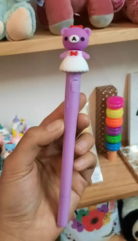 Lapicera diseño en silicona oso Morado con luz. Punta fina 0,5mm