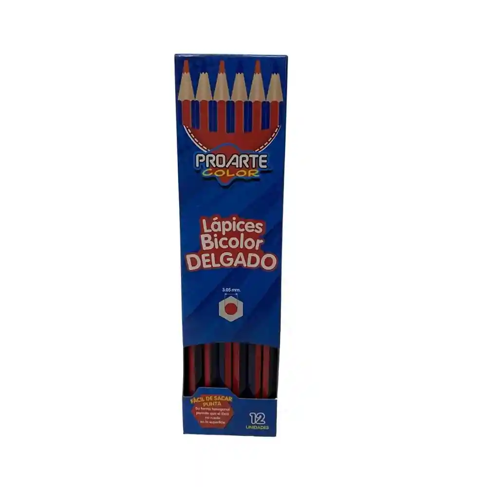 Caja con 12 lápices bicolor de trazo delgado, ideales para subrayar, marcar y organizar apuntes. Colores intensos y mina resistente, perfectos para el colegio, oficina o uso diario.