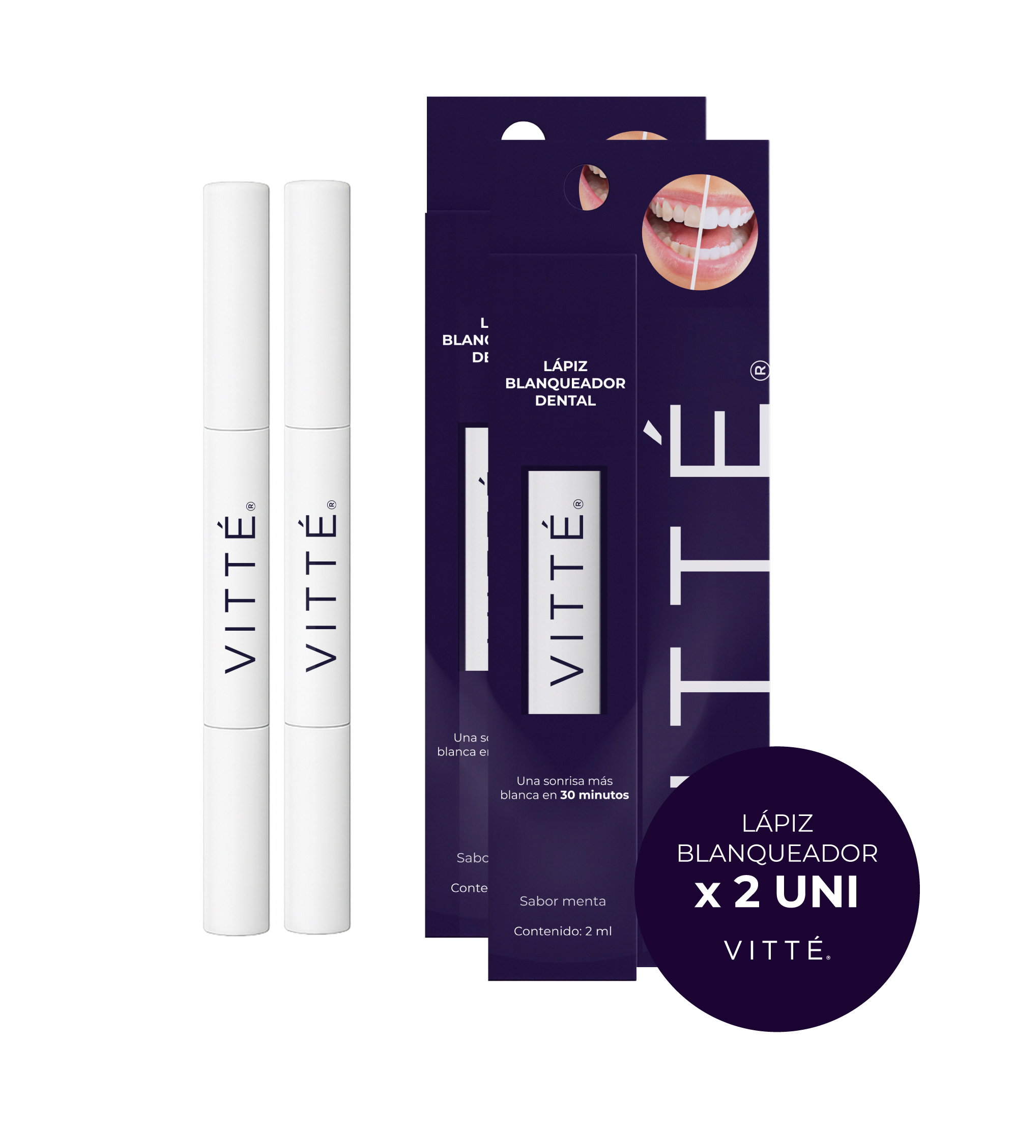 1 Caja (1 unidad) - Ideal para comenzar Prueba el tratamiento VITTÉ y nota resultados desde la primera aplicación. Tratamiento profesional en casa. Ideal para quienes buscan una forma rápida, práctica y precisa de blanquear sus dientes, el Lápiz Blanqueador VITTÉ te permite iluminar tu sonrisa en minutos y desde cualquier lugar. Su fórmula avanzada actúa directamente sobre manchas superficiales y acumuladas, logrando dientes visiblemente más blancos sin sensibilidad ni irritación. Perfecto para retocar, mantener resultados o complementar tu tratamiento con las Tiras Blanqueadoras VITTÉ. ¿Qué es y cómo funciona? El Lápiz VITTÉ contiene un gel blanqueador profesional diseñado para aplicarse con precisión gracias a su punta tipo pincel. Esta permite cubrir zonas específicas —como bordes, manchas individuales o dientes desalineados— donde las tiras no siempre hacen contacto directo. Al aplicar una fina capa de gel sobre dientes limpios y secos, los ingredientes activos comienzan a actuar inmediatamente, penetrando las manchas superficiales sin afectar el esmalte. En apenas 30 segundos de aplicación y 10 minutos de acción, notarás una sonrisa más luminosa y uniforme. Uso sencillo y rápido Sin sensibilidad ni irritación Resultados visibles en pocos días Seguro para el esmalte dental Perfecto para retocar antes de eventos o fotos Compatible con coronas y empastes (sin efecto sobre ellos) Formato portátil: úsalo donde quieras Ingredientes: Phthalimidoperoxycaproic Acid (PAP): Ingrediente activo que elimina manchas sin dañar el esmalte. Xylitol: Promueve la salud bucal y combate las bacterias. Glycerol y Polymethacrylates: Proporcionan hidratación y adhesión óptima del gel. Ingredientes seguros y aprobados para un blanqueamiento profesional. Beneficios principales: Sonrisa más blanca y luminosa Fórmula segura y sin daño al esmalte Aplicación cómoda y sin molestias Tratamiento rápido y efectivo Frescura agradable con sabor a menta Precauciones y recomendaciones: No comer, fumar ni beber (excepto agua) durante el uso. Mantener fuera del alcance de niños y evitar contacto con ojos. No recomendado para menores de 18 años. Consulta con tu dentista si tienes dudas o tratamientos dentales específicos. Contenido del empaque: 2 Lápices Blanqueadores VITTÉ