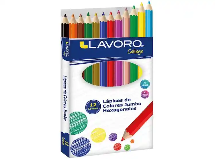 Lapiz de colores en tamaño jumbo, hexagonales. Marca lavoro. 12 colores.