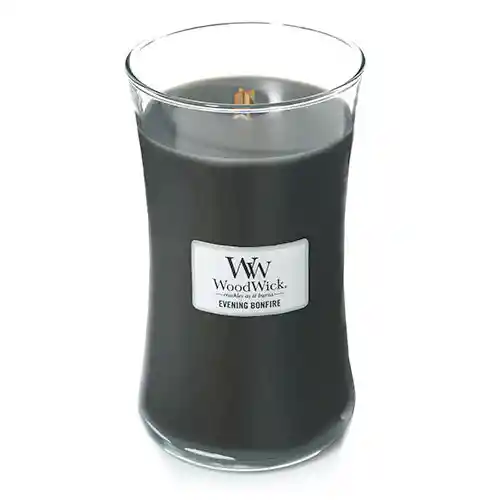 Vela Jar Grande Hoguera de tarde Evening Bonfire: El aroma acogedor de maderas cálidas trae recuerdos de noches frescas alrededor de un fuego ardiente con sus amigos más queridos. Las velas grandes con silueta de reloj de arena WoodWick® llenan su hogar con el suave crujido y los aromas acogedores y una mecha de madera natural que cruje mientras arde ™. El crepitante relajante de una vela WoodWick® es creado por una tecnología patentada PLUSWICK®, diseñada para garantizar una experiencia de crepitación segura y consistente para una fragancia más rápida y un mejor quemado mientras perfuma su hogar con el sonido relajante de un fuego crepitante. (4.0 "x 7.0") Especificaciones Cera: la parafina premium y las ceras de soya se mezclan con fragancias altamente concentradas para producir un hermoso quemado sin residuos sucios. Olor: cuidadosamente seleccionado y probado para garantizar que la vela llene la habitación con su aroma duradero. Peso: 1100g