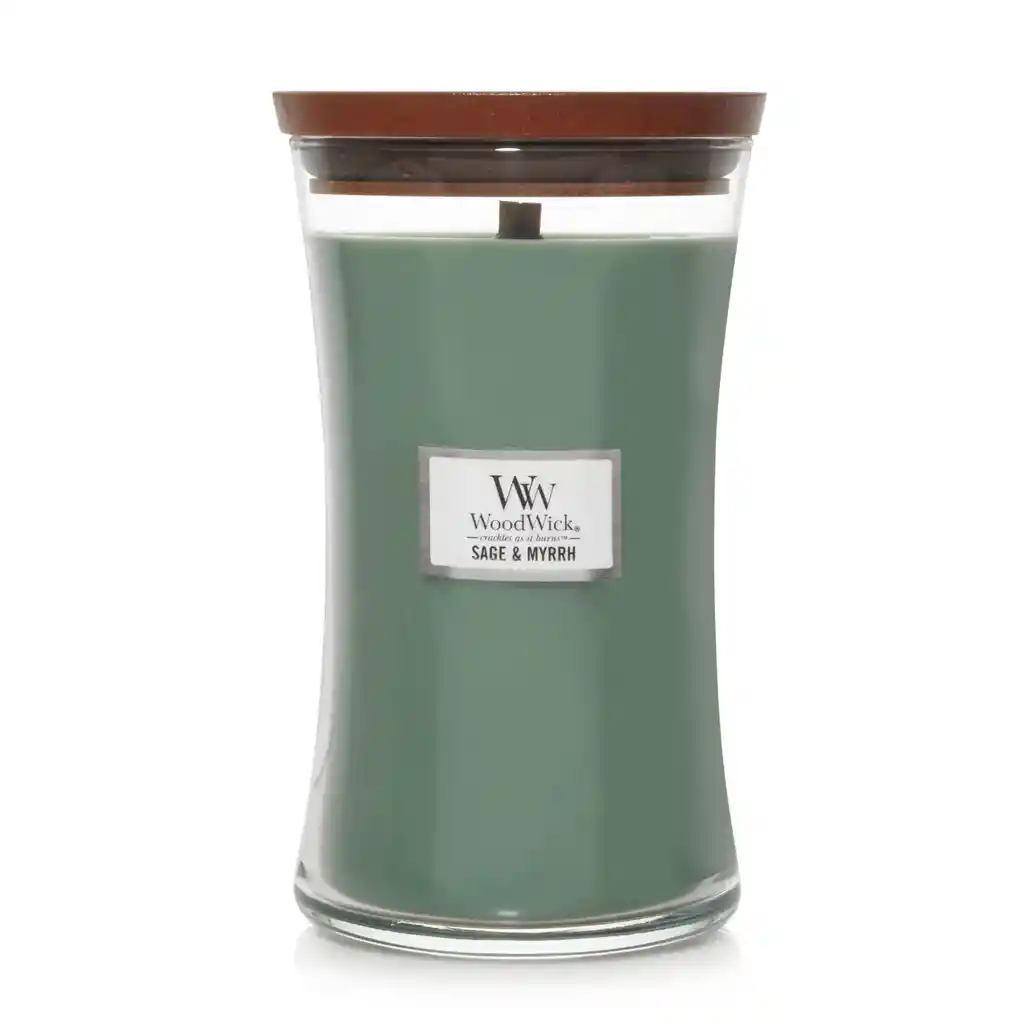 Vela Hourglass Grande Sage & Myrrh Sage & Myrrh: Una mezcla de hierbas revitalizantes con mirra, incienso y bergamota. Envuelto en sándalo cremoso y ámbar. Un aroma único que es fresco pero reconfortante. Impresiones: Bergamota, canela, lavanda - Incienso, Salvia, Mirra - Cedro, sándalo, pachulí Las velas grandes con silueta de reloj de arena WoodWick® llenan su hogar con el suave crujido y los aromas acogedores y una mecha de madera natural que cruje mientras arde ™. El crepitante relajante de una vela WoodWick® es creado por una tecnología patentada PLUSWICK®, diseñada para garantizar una experiencia de crepitación segura y consistente para una fragancia más rápida y un mejor quemado mientras perfuma su hogar con el sonido relajante de un fuego crepitante. (4.0 "x 7.0") Especificaciones Cera: la parafina premium y las ceras de soya se mezclan con fragancias altamente concentradas para producir un hermoso quemado sin residuos sucios. Olor: cuidadosamente seleccionado y probado para garantizar que la vela llene la habitación con su aroma duradero. Peso: 1100g