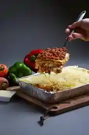 Lasagna artesanal hecha con harina italiana, rellena de carne, salsa napolitana, salsa bechamel y queso parmesano. Formato Congelado FAMILIAR 6 persobnas Colocar 50 min A 180° en horno previamente precalentado a 200° POR 5 min.