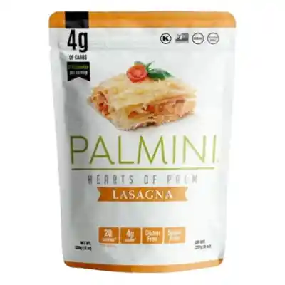 Palmini. Palmini busca reinventar la pasta utilizando como principal ingrediente el palmito, un vegetal lleno de vitaminas y minerales y una gran fuente de fibra. Esta pasta no contiene gluten, azúcar y tiene un muy bajo aporte calórico. Es de sabor suave por lo que adoptará el sabor de cualquier salsa o condimento con la que se prepare, dando múltiples opciones para utilizarla en la cocina. Apto para Veganos. Sin gluten. Ingredientes: Palmitos en rodaja, sal de mar natural, ácido cítrico. Mantener en un lugar fresco y seco. Una vez abierto, mantener refrigerado.
