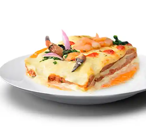 Masa artesanal, rellena de carne de jaiba y camarones, tomate, salsa bechamel y queso parmesano. Producto congelado. Preparación: Precalentar el horno por 5 min. a 180°, introducir la lasaña por 30 minutos aproximadamente.