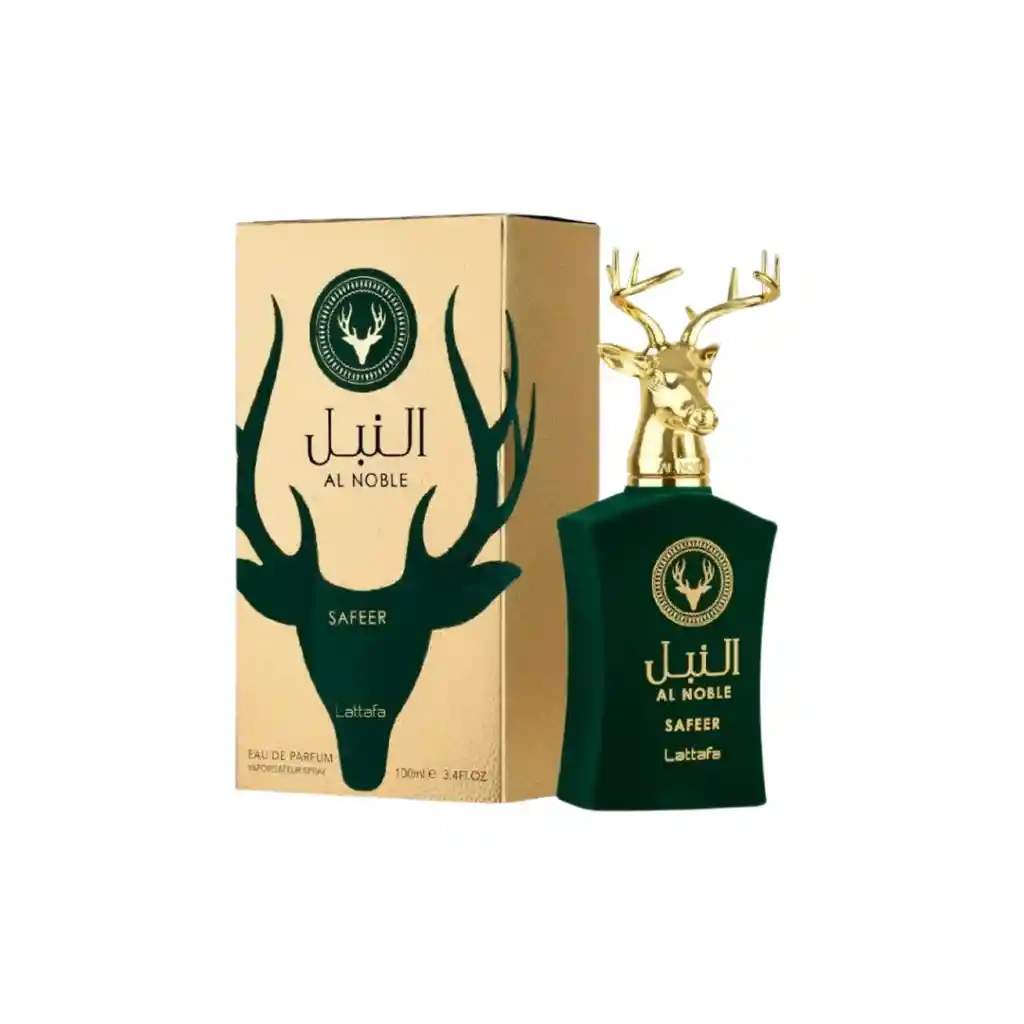 Safeer de Lattafa Perfumes es una fragancia de la familia olfativa para Hombres y Mujeres. Las Notas de Salida son bergamota y abrótano; las Notas de Corazón son notas herbales, notas verdes y notas especiadas; Las Notas de Fondo son madera de gaiac, enebro de Virginia, Incienso, pachulí, Notas de frutos secos, ládano y comino. acordes principales