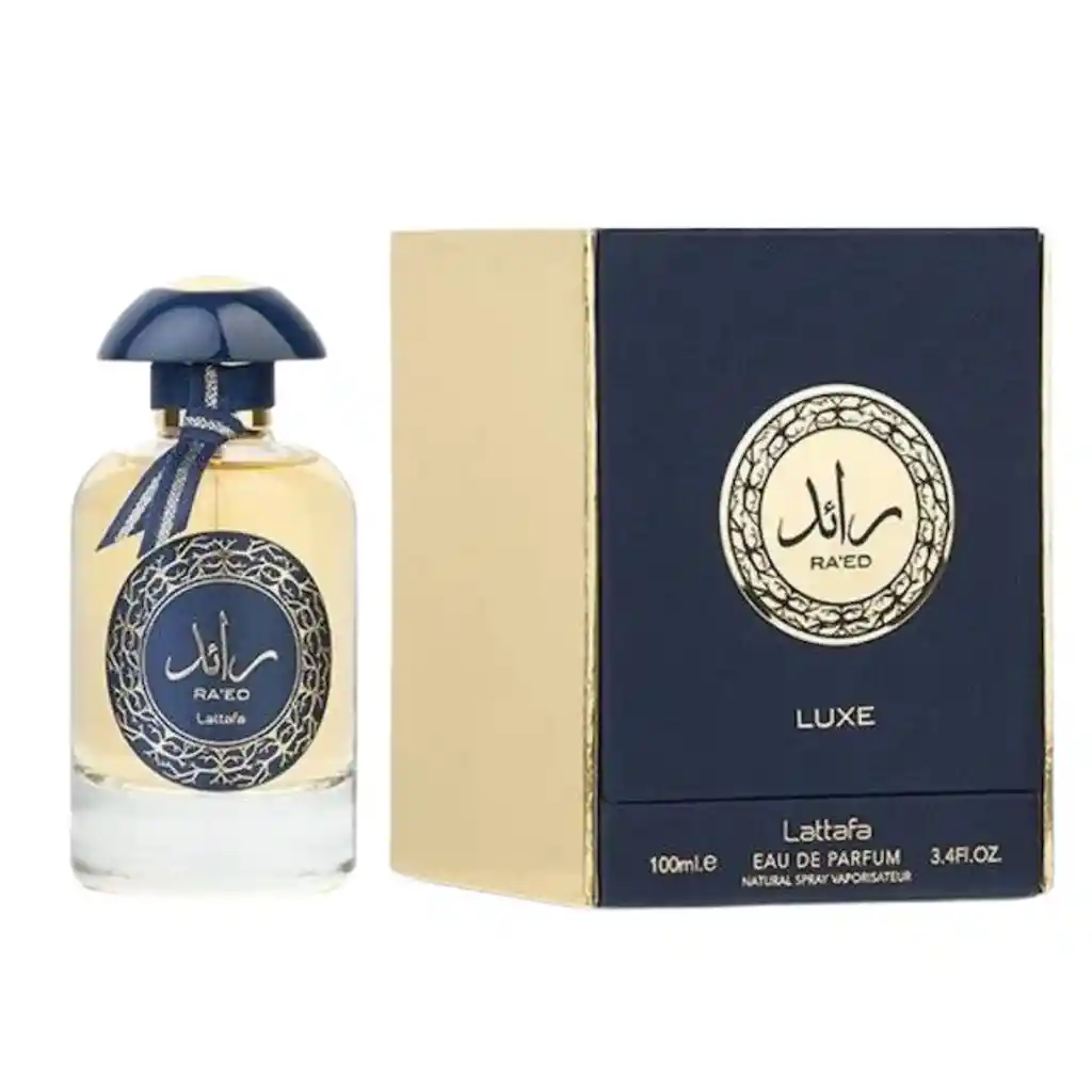 Ra'ed Luxe de Lattafa Perfumes es una fragancia de la familia olfativa Ámbar Especiada para Hombres y Mujeres. Ra'ed Luxe se lanzó en 2019. Las Notas de Salida son enebro de Virginia, piña, sandía, jazmín, pimienta rosa y flor de la acacia de Constantinopla (árbol de la seda); Las Notas de Corazón son lavanda, salvia, notas herbales y canela; Las Notas de Fondo son Hielo, fresa, ámbar, vetiver, vainilla, almizcle, haba tonka, sándalo y castaña.