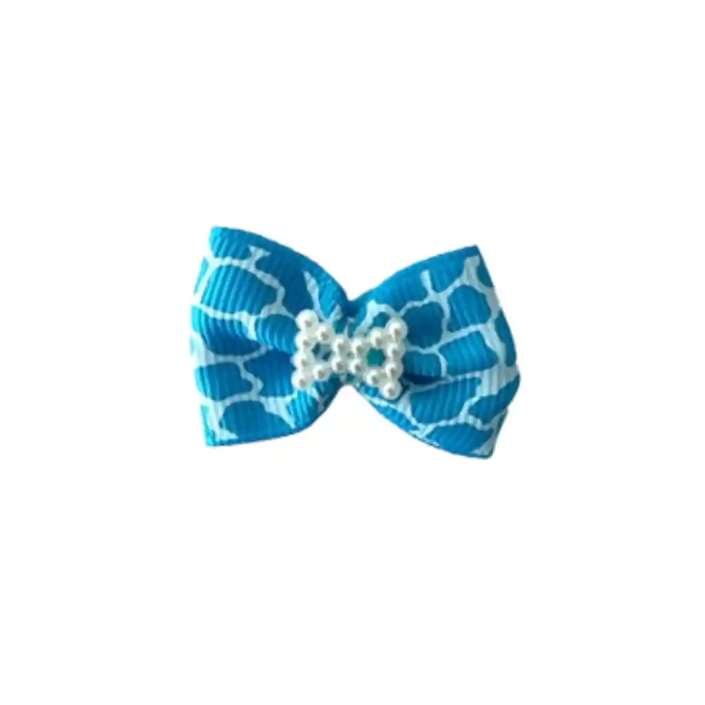 Color y diseño: Celeste con estampado blanco y detalles de perlas. Se sujeta mediante bandas elásticas