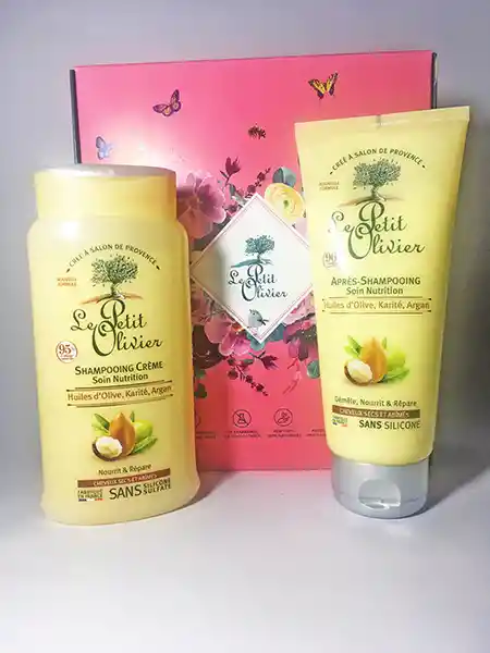 Shampoo Botella de 250 mL + Acondicionador Botella de 200 mL. No Testeados en Animales. Sin Parabenos ni Fenoxietanol. Sin Materia Prima de Origen Animal. pH Neutro y Testeado Dermatológicamente. Envases Reciclados. Origen: Francia