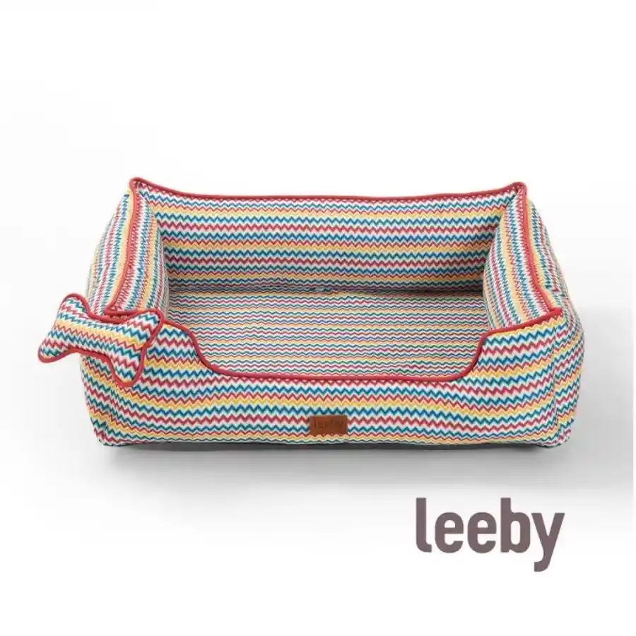 Añade un toque de vida y bienestar al rincón de tu perro con la Cama Premium Zigzag de Leeby. Su tejido de sarga 21S combina durabilidad y suavidad, mientras el vibrante estampado zigzag aporta alegría a cualquier espacio. El núcleo de espuma viscoelástica D28-D32 de 4 cm ofrece un soporte ergonómico que alivia la presión en las articulaciones y fomenta un descanso reparador. Los bordes reforzados con fibra de poliéster mantienen la forma y proporcionan contención, y la base antideslizante garantiza que la cama permanezca firme incluso en superficies lisas. Además, incluye un cojín-hueso con chirriador para momentos de juego y refuerzo del vínculo con tu mascota. Su funda 100 % extraíble facilita el lavado a máquina con agua fría en ciclo suave, manteniendo la cama siempre limpia y fresca. Disponible en tallas S, M y L, se adapta perfectamente a perros pequeños, medianos y grandes. Características Estampado zigzag multicolor para un diseño moderno Espuma viscoelástica de 4 cm que cuida articulaciones Bordes con fibra de poliéster para estabilidad adicional Cojín-hueso integrado con chirriador para entretenimiento Funda extraíble y lavable a máquina para un mantenimiento fácil Base antideslizante que evita desplazamientos Tres tallas disponibles (S, M, L) para todo tipo de perros Materiales Exterior: poliéster sarga 21S Relleno: espuma viscoelástica D28/D32 Bordes: fibra de poliéster Base: PVC antideslizante Instrucciones de lavado Retira la funda mediante la cremallera. Lava a máquina con agua fría y ciclo suave; usa detergente neutro. Seca al aire libre o en secadora a baja temperatura. Limpia el cojín-hueso con paño húmedo y deja secar antes de usar.