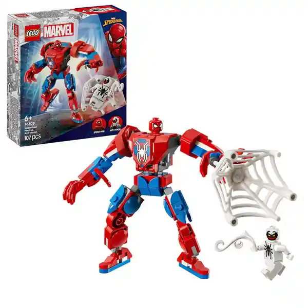 El set Armadura Robótica de Spider-Man vs. el Anti-Venom (76308) es el juguete LEGO® de superhéroes ideal para pequeños apasionados de las armaduras robóticas, las minifiguras y la acción de las películas de Marvel. Este juego LEGO Marvel de extraordinaria calidad pondrá una figura de Spider-Man para construir totalmente articulada en las manos de tu joven superhéroe de 6 años o más y, con ella, ¡un sinfín de imaginativas aventuras! Este juego LEGO Marvel incluye 2 minifiguras: Spider-Man y elAnti-Venom, con manos tentaculares. La armadura robótica construible tiene brazos, piernas y dedos móviles. Los niños abrirán el torso y colocarán la minifigura de Spider-Man en la cabina. Para atrapar a la minifigura del Anti-Venom, el set trae una gran telaraña flexible que se puede sujetar tanto a la mano de la minifigura como a la de la armadura robótica. Para disfrutar también de diversión digital, los constructores pueden acercar y girar sus modelos en 3D con la intuitiva app LEGO Builder. Set LEGO® Marvel Armadura Robótica de Spider-Man vs. el Anti-Venom: Este juguete infantil construible viene con una gran figura de una armadura robótica y 2 minifiguras listas para proporcionar diversión a los niños y las niñas a partir de 6 años. Juego de construcción con Spider-Man: Este juguete para construir y jugar, basado en el popular superhéroe, incluye minifiguras de Spider-Man y el Anti-Venom, además de accesorios para fomentar el juego imaginativo. Figura para construir de la armadura robótica de Spider-Man: La armadura robótica LEGO® Marvel cuenta con brazos, piernas y dedos articulados; el torso se abre y contiene una cabina con espacio para la minifigura de Spider-Man. Set LEGO® construible para interpretar aventuras de superhéroes: Para capturar a la minifigura del Anti-Venom, los peques pueden usar la gran telaraña flexible y sujetarla a mano de la armadura robótica. Regalo inspirado en Spider-Man para niños y niñas: Este divertido set de construcción LEGO® es una fantástica idea de regalo para pequeños fans de las aventuras de superhéroes y la acción de proporciones épicas con armaduras robóticas megagrandes. Más armaduras robóticas y minifiguras: Hay muchos más sets LEGO® de superhéroes (a la venta por separado) que los peques pueden coleccionar y combinar para llevar el juego imaginativo a nuevas dimensiones. Juguetes construibles para jóvenes superhéroes: La amplia gama de sets de construcción LEGO® Marvel ofrece a los niños un universo de aventuras de superhéroes para construir y jugar en constante cambio. Juego construible de 107 piezas: Pon un sinfín de épicas aventuras en las manos de tu joven fan de Spider-Man con esta armadura robótica articulada que mide aproximadamente 11 cm de altura.