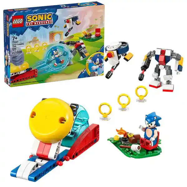 ¡La aventura y la diversión esperan a los peques a partir de 7 años en el juego de construcción coleccionable Batalla de Sonic en la Hoguera (77001)! Este juguete LEGO® Sonic the Hedgehog™ incluye una hoguera, una esfera de velocidad con lanzador y accesorios, como una Chaos Emerald y 3 Rings dorados. El set, basado en la saga de videojuegos, contiene 4 personajes de Sonic: una minifigura de Sonic, el dron robótico “volador” G.U.N. Beetle, una figura articulada del robot G.U.N. Hunter y un Tocky. Este juguete interactivo para niños y niñas anima a peques y fans a crear nuevas historias protagonizadas por Sonic, que puede desde relajarse junto a una hoguera hasta enfrentarse a los robots enemigos para rescatar al Tocky y conseguir los 3 Rings dorados. La creativa y trepidante acción puede ampliarse con otros juguetes LEGO Sonic the Hedgehog de la gama (a la venta por separado). Los niños también cuentan con la app LEGO Builder, su guía en la intuitiva aventura de construcción. Juguete infantil basado en la saga de videojuegos: Regala a tu peque de 7 años en adelante el divertido y trepidante set Batalla de Sonic en la Hoguera, que anima a niños, niñas y fans a reimaginar historias con sus personajes de Sonic favoritos. Juego coleccionable con Sonic: Este juguete repleto de características incluye una esfera de velocidad con lanzador, un modelo con una hoguera y 4 figuras del universo Sonic: Sonic, un dron robótico G.U.N. Beetle, un robot G.U.N. Hunter y un Tocky. Set con funciones inspiradas en el videojuego: Este set de construcción LEGO® potencia la acción y la diversión con un lanzador de esferas de velocidad que lanza la esfera de velocidad (con Sonic dentro) como un rayo hacia las figuras de robots. Juguete nostálgico: El set cuenta con montones de creativos detalles, como una hoguera con un palito y una nube de azúcar, 3 Rings dorados y una mochila donde la figura del robot G.U.N. Hunter lleva al Tocky. Regalo para jugadores: Este juguete LEGO® Sonic para niños y niñas inspirará un sinfín de aventuras con Sonic, los robots y el Tocky; además, es un divertido regalo que niños y fans querrán enseñar a sus amigos y llevar a las reuniones de juegos. Más diversión: Descubre los extraordinarios juegos LEGO® Sonic the Hedgehog™ disponibles y alimenta la pasión de tu joven fan de la saga con otros emocionantes modelos (a la venta por separado). Juguetes LEGO® Sonic: Todos los sets LEGO Sonic the Hedgehog™ introducen a los peques en un mundo de divertida acción trepidante y juego imaginativo con diferentes personajes y numerosas posibilidades narrativas. Medidas: Este set LEGO® de 177 piezas basado en la saga de videojuegos contiene un modelo interactivo con una hoguera de juguete que mide aproximadamente 2 cm de altura, 6 cm de anchura y 6 cm de profundidad.