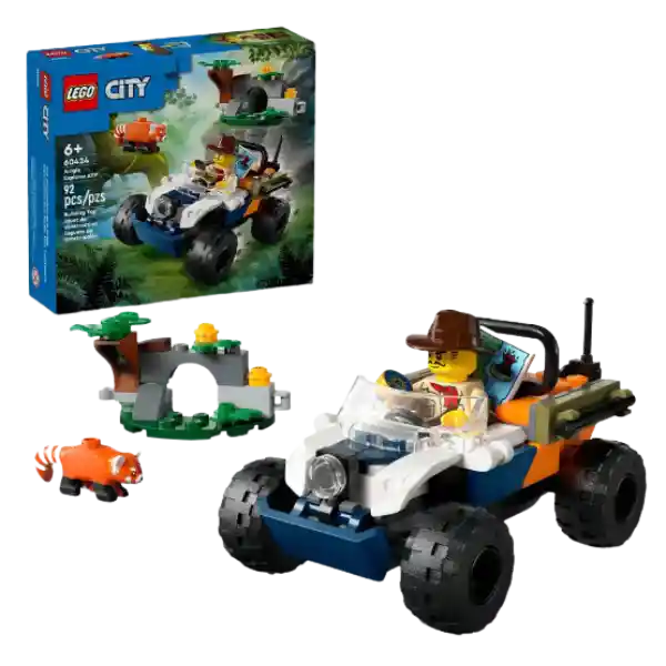 Este juguete incluye todo lo que los peques necesitan para construir un todoterreno LEGO®, una escena de la jungla, una minifigura de un explorador y una figura de un panda rojo. Los niños disfrutan de una divertida experiencia de construcción antes de unirse al explorador a bordo del todoterreno para vivir divertidas aventuras en la naturaleza. Este set con un panda rojo de juguete trae divertidos accesorios que potencian el juego simbólico, como una brújula, un walkie-talkie y una cámara de juguete, además de un elemento impreso que representa un mapa. Este juguete de construcción LEGO® Cityes un divertido regalo con motivo de las fiestas o solo porque sí para niños y niñas a partir de 6 años. LEGO® City es un lugar donde los niños pueden liberar su ilimitada imaginación. Sus estructuras, vehículos y ciudadanos son una extraordinaria motivación que los impulsa a construir, crear, explorar y jugar. El todoterreno de este set LEGO® City de 92 piezas mide aproximadamente 5 cm de altura, 9 cm de longitud y 5 cm de ancho. Se recomienda de 6 años en adelante.