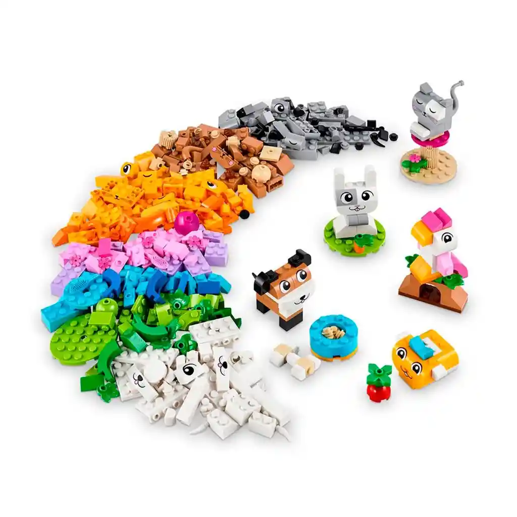Los peques de 5 años o más con pasión por los animales pueden volcar en ellos todo su amor con este set de construcción de mascotas. El juguete LEGO® Classic Mascotas Creativas (11034) contiene una inspiradora mezcla de ladrillos para construir rápidamente una colorida gama de animales con la ayuda de sencillas guías. Además, es fantástico para fomentar la construcción creativa. Sus 450 ladrillos LEGO, entre ellos piezas especiales decoradas con ojos y bocas, y sus instrucciones paso a paso permiten a los peques construir un perro con un comedero y un hueso, un gato sobre un rascador, un hámster con una manzana, un conejo con una zanahoria y un pájaro en una rama. Después, a partir de las sugerencias incluidas de colores, formas y funciones alternativas, los niños pueden reconstruir sus mascotas de otra manera. A medida que desarrollen sus habilidades, también podrán construir sus propias creaciones. Las 10 ideas de la guía pondrán en marcha la diversión de la construcción libre. • Juguete infantil para construir mascotas: Los pequeños amantes de los animales pueden construir sus propias mascotas y luego personalizarlas con el set LEGO® Classic Mascotas Creativas para niños y niñas de 5 años o más. • Animales de juguete construidos con ladrillos: Tu peque puede construir un gato sobre un rascador, un perro con un comedero y un hueso, un hámster con una manzana, un conejo con una zanahoria y un pájaro en una rama. • Inspira a tu joven constructor o constructora: Las piezas especiales, decoradas con ojos y bocas, y las sencillas instrucciones paso a paso animan a los niños a crear y personalizar sus propias mascotas. • Creatividad sin límites: Incluye una guía con 10 ideas para poner en marcha toda la diversión de la construcción libre y que los peques puedan inspirarse en ellas para experimentar. • Juguetes LEGO® infantiles de animales: Este juguete para construir con ladrillos es fantástico como regalo de cumpleaños, por las fiestas o solo porque sí para niños y niñas a los que les encantan los perros, los gatos y otras mascotas. • Diseñado para jóvenes constructores: La guía visual es muy fácil de seguir y permite a los niños construir los modelos más rápido, que pueden combinar con los sets 11035, 11036 y 11037(a la venta por separado) para continuar pasándolo genial. • Ladrillos que ayudan a adquirir habilidades: Los sets LEGO® Classic ponen el juego libre en las manos de los jóvenes constructores y promueven la expresión personal creativa. • Kit de construcción LEGO® de 450 piezas: El gato sobre el rascador y el perro de este set de construcción, una vez terminados, miden 7 cm y 5 cm de altura, respectivamente.