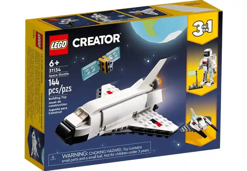 Tu fan de los juegos basados en el espacio emprenderá grandes misiones intergalácticas con el set LEGO® Creator 3en1 Lanzadera Espacial (31134), que permite construir la Lanzadera Espacial, un astronauta articulado o una nave espacial. Los niños pueden elegir con qué modelo interpretarán sus historias, si con la Lanzadera Espacial de juguete, con una figura de un astronauta con brazos y piernas articulados o con una alucinante nave espacial. La Lanzadera Espacial tiene una escotilla abatible de acceso al satélite extraíble que contiene en el interior y la figura del astronauta cuenta con una mochila propulsora y una bandera para plantarla en una base. Este set de 144 piezas ofrece a los entusiastas del espacio a partir de 6 años una gratificante experiencia de construcción antes de empezar a jugar. La resistente Lanzadera Espacial de juguete mide aproximadamente 6 cm de altura, 12 cm de longitud y 16 cm de anchura; con este tamaño perfectamente portátil, los niños podrán llevársela a todas partes. Se recomienda de 6 años en adelante.