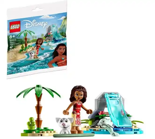 Da alas a la fantasía de tu fan de Moana, el personaje Disney, con este set y todo lo que contiene, como un tobogán-catarata para Moana y su cerdito Pua, una figura LEGO® de un delfín y otros elementos. Se recomienda de 6 años en adelante.