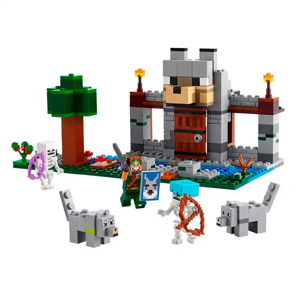 Los fans de los juegos de aventuras, las fortificaciones y los personajes Minecraft® podrán disfrutar de todo eso y más en el set LEGO® Minecraft La Fortaleza-Lobo (21261). Este juguete basado en Minecraft para niños y niñas a partir de 8 años incluye un edificio, un héroe explorador y esqueletos hostiles. Los peques construyen una base para el domador de lobos, colocan sobre la entrada una cabeza de lobo y se divierten cambiando su expresión de amable a enfadada. Dentro hay una mesa de trabajo, un alto horno, un yunque y, por primera vez en un set LEGO Minecraft, una mesa de herrería. El cofre de suministros contiene un lingote de inframundita que los niños convierten en una espada, además de bayas dulces y huesos para domar al lobo salvaje. Fuera hay una sección de un bosque con un árbol, una roca, un champiñón y un arbusto de bayas dulces. 2 esqueletos de juguete Minecraft merodean por el bosque: uno tiene un arco encantado y el otro lleva un arco, una flecha y un casco de diamante. Set LEGO® Minecraft® de aventuras para peques: Los niños y las niñas de 8 años o más con pasión por Minecraft podrán disfrutar explorando una fortificación y un bosque en el mundo real con el juguete de construcción creativa La Fortaleza-Lobo. Juego creativo en un castillo: El juguete incluye una mesa de trabajo, un alto horno, un yunque y una mesa de herrería, así como una figura LEGO® Minecraft® de un domador de lobos, 2 esqueletos y 2 lobos. Juguete para construir y juego de acción: Los peques doman a un lobo salvaje, luchan contra esqueletos y usan diversos equipos para la fabricación de objetos en este juguete con un héroe explorador del bosque. Lobo Minecraft® de juguete: La entrada a la base del domador de lobos tiene encima una gran cabeza de lobo construible; los niños pueden cambiarle rápidamente la expresión de amable a enfadada Regalo LEGO® basado en el videojuego: Este set de aventuras en el mundo real, un versátil juguete de construcción para niños y niñas, es el regalo de cumpleaños o solo porque sí perfecto para jugadores de Minecraft® Instrucciones de construcción 3D: Los peques pueden descargar la app LEGO® Builder y sumergirse en la experiencia de construcción con herramientas digitales para acercar y girar versiones 3D de los modelos, guardar sets y seguir sus progresos Minecraft® en el mundo real: Los juguetes de construcción para niños LEGO® Minecraft les proponen una manera distinta de disfrutar del videojuego; sus criaturas, escenas y funciones cobran vida mediante la creatividad tangible de los ladrillos LEGO. Fortificación en el bosque de 312 piezas: Una vez construido el juguete, la parte de la fortaleza mide aproximadamente 11 cm de altura, 16 cm de anchura y 12 cm de profundidad.