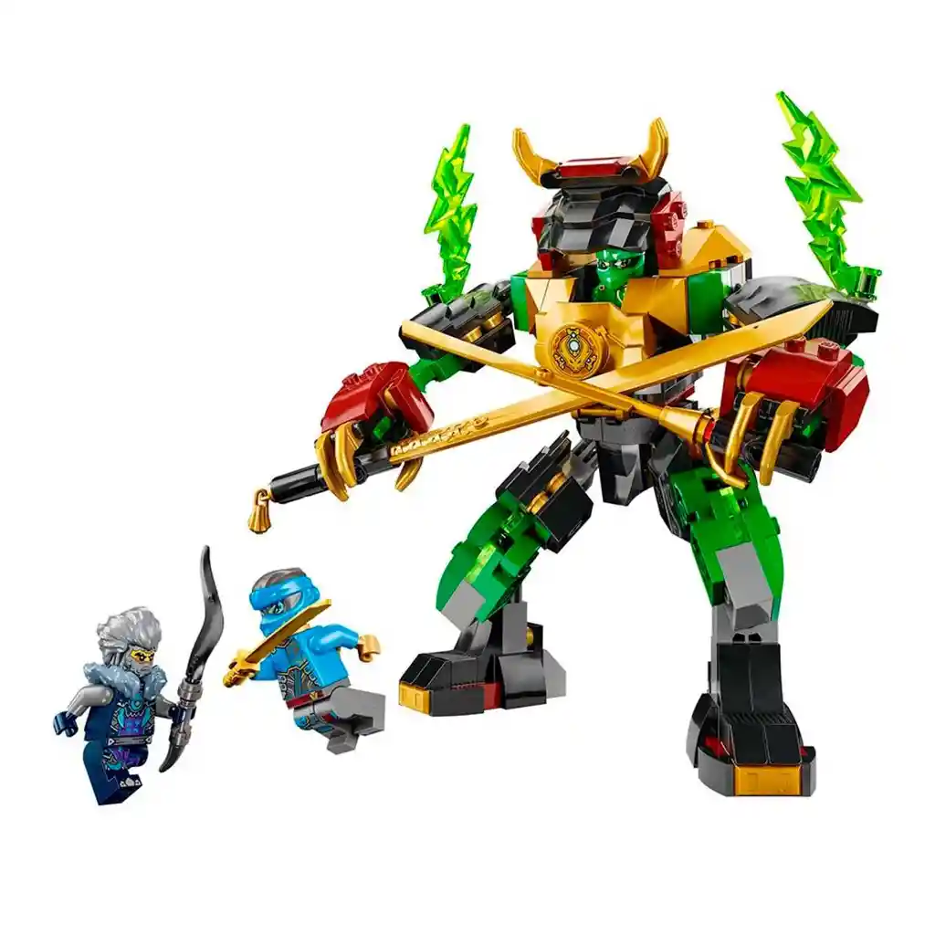 Los niños y las niñas de 7 años o más podrán recrear las historias de la temporada 2 de la serie para televisión NINJAGO®: El Renacer de los Dragones con el juego de aventuras Meca de Poder Elemental de Lloyd (71817). Este meca de juguete cuenta con brazos y piernas articulados que los peques pueden inclinar y torcer para colocarlo en dinámicas posturas de combate, un torso giratorio, 2 grandes catanas y una cabina con espacio para una minifigura. ¡Este meca personalizable permite a los niños construir su propio meca totalmente único! Las piernas, los brazos y el torso desmontables pueden combinarse con las partes de otras 3 figuras de mecas construibles: Meca Elemental de la Tierra de Cole (71806), Meca Elemental Tecno de Sora (71807) y Meca Elemental del Fuego de Kai (71808), a la venta por separado. El juguete ninja incluye también 3 minifiguras para que los peques interpreten emocionantes historias de héroes ninja: Lloyd con una catana, Nya con una catana y Cinder con una espada. • Figura de acción de juguete personalizable: El juego de aventuras Meca de Poder Elemental de Lloyd tiene piernas, brazos y torso desmontables que puedes intercambiar con los de otros 3 mecas (a la venta por separado). • Meca de juguete articulado:El meca de Lloyd cuenta con una cabina para él, 2 grandes catanas, un torso giratorio y brazos y piernas articulados que los niños pueden inclinar y torcer para colocarlos en posturas de combate. • Construye tu propio meca de juguete: Los fans de los ninja se lo pasarán genial durante horas usando su creatividad para crear su propio meca combinando las partes de este y otros 3 mecas personalizables (sets a la venta por separado). • 3 minifiguras NINJAGO®: Los peques pueden imaginar lo que sucede cuando Lloyd y Nya (cada uno armado con una catana) se enfrentan a Cinder (con una espada) e interpretar la emocionante historia. • Regalo ninja: Además de proporcionar una divertida experiencia de construcción y juego, este juguete de combate es una fantástica idea de regalo solo porque sí para niños y niñas a partir de 7 años que disfrutan con las aventuras de los ninja. • Más mecas personalizables: Tu peque puede combinar las partes del meca de Lloyd con las del Meca Elemental de la Tierra de Cole (71806), el Meca Elemental Tecno de Sora (71807) y el Meca Elemental del Fuego de Kai (71808), a la venta por separado. • Un universo de juguetes ninja: Los sets LEGO® NINJAGO® contienen dragones, vehículos y templos, y transportan a los niños a un mundode fantasía lleno de aventuras con sus héroes ninja. • Dimensiones: El meca de juguete de este set LEGO® de 253 piezas mide aproximadamente 19 cm de altura.