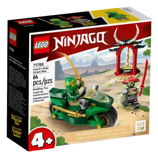 Los niños a partir de 4 años podrán aprender a construir a la vez que descubren el emocionante mundo de fantasía de NINJAGO® con el set Moto Callejera Ninja de Lloyd (71788). Incluye a Lloyd y el Guardián Huesos, ambos con espadas, para que los pequeños constructores interpreten divertidas batallas. Después de la gratificante experiencia de construcción, los niños podrán usar su imaginación para representar historias protagonizadas por Lloyd en su moto y por el Guardián Huesos, su enemigo. El pequeño templo para construir, con un lanzador de discos secreto y un arma dorada, aportará aún más diversión a las aventuras de los niños. La Moto Callejera Ninja de Lloyd mide aproximadamente 4 cm de altura; con esas dimensiones, los niños pueden jugar con ella en casa o llevársela a las reuniones de juegos en las casas de sus amigos. La app LEGO® Builder guiará a los peques en la intuitiva aventura de construcción. Podrán controlar su avance en el proceso, guardar sets, y acercar y girar modelos en 3D a medida que construyen. Se recomienda de 4 años en adelante.
