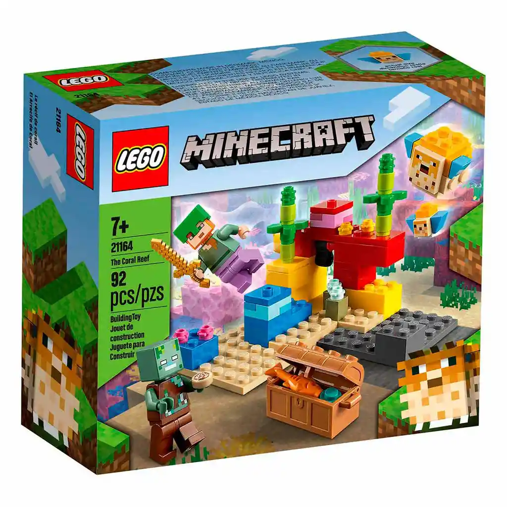 Set Contiene 92 Piezas el Popular Juego Infantil en Línea Cobra Vida en el Mundo Real Con el Set Básico Lego Minecraft el Arrecife de Coral (21164). Con Sus Ladrillos Lego Reconfigurables Una y Otra Vez Hasta el Infinito la Diversión y la Construcción Creativa no Tendrán Fin.Pura Acción Minecraft en Una Aventura Subacuática Los Peques se Unirán a Alex el Popular e Intrépido Personaje Del Universo Minecraft y se Sumergirá Con Ella en el Océano Minecraft en Busca de un Tesoro Escondido Entre el Vistoso Arrecife de Coral.